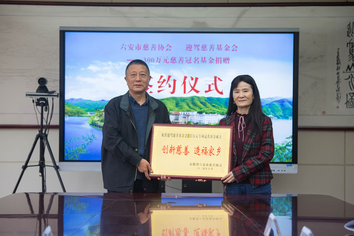 為祝賀迎駕慈善基金會(huì)專(zhuān)項(xiàng)基金的設(shè)立,儀式上,六安市慈善協(xié)會(huì)還向迎駕慈善基金會(huì)贈(zèng)送了“創(chuàng)新慈善 造福家鄉(xiāng)”的牌匾。