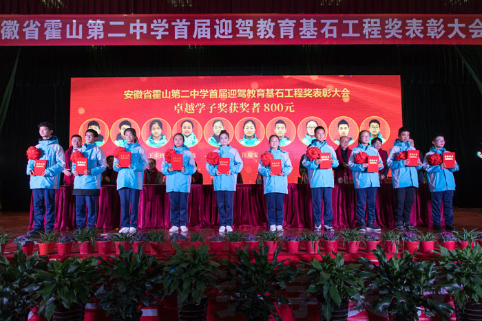 在12月23日召開的霍山二中首屆迎駕教育基石工程獎表彰大會上,霍山縣委常委、宣傳部長張潤之,副縣長朱靜,中國釀酒大師、迎駕貢酒股份有限公司董事長倪永培,迎駕慈善基金會理事長陳正林、副理事長黃必義等,為該校33名優(yōu)秀教師、教育工作者和80名優(yōu)秀學(xué)生頒發(fā)了“迎駕教育基石工程獎”獲獎證書。