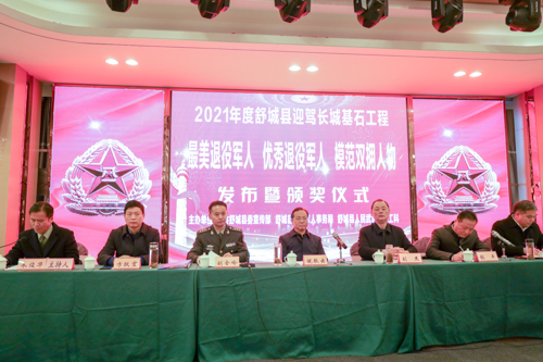 為促進(jìn)社會(huì)形成尊崇、關(guān)愛(ài)退役軍人的良好風(fēng)尚,弘揚(yáng)退役軍人永葆本色、奮發(fā)圖強(qiáng)的模范精神,12月28日,舒城縣首屆迎駕長(zhǎng)城基石工程“最美退役軍人”、“優(yōu)秀退役軍人”、“模范雙擁人物”發(fā)布暨頒獎(jiǎng)儀式隆重舉行。六安市退役軍人事務(wù)局黨組成員、副局長(zhǎng)劉杰,舒城縣領(lǐng)導(dǎo)倪敬云、劉全嶺、方躍宏、朱傳旭,迎駕慈善基金會(huì)理事長(zhǎng)張平等出席了發(fā)布暨頒獎(jiǎng)儀式。
