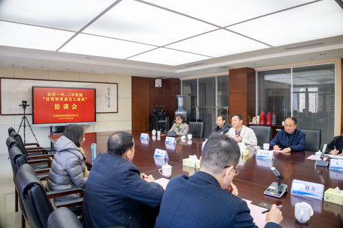 3月7日,安慶一中、安慶二中實施“迎駕教育基石工程獎”洽談簽約儀式在迎駕集團舉行,安慶市政府副市長王趙春,霍山縣委常委、副部長朱靜,中國釀酒大師、安徽迎駕集團黨委書記、董事長、總裁倪永培,集團副總裁、工會主席程培華,迎駕慈善基金會理事長張平,副理事長張華、姚圣來,秘書長朱紅霞等出席儀式。