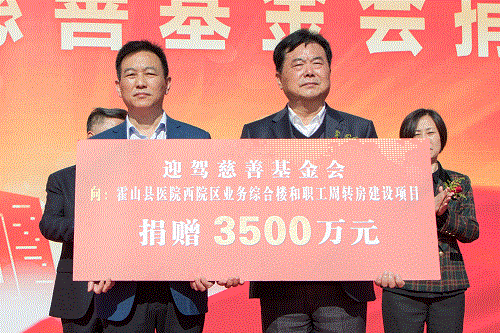10月20日,霍山縣醫(yī)院西院區(qū)業(yè)務(wù)綜合樓和職工周轉(zhuǎn)房建設(shè)項(xiàng)目開工暨迎駕慈善基金捐贈(zèng)儀式舉行,迎駕慈善基金會(huì)捐贈(zèng)人民幣3500萬(wàn)元,用于支持該項(xiàng)目建設(shè)??h領(lǐng)導(dǎo)張守銳、張潤(rùn)之、李燕、汪琴,集團(tuán)公司領(lǐng)導(dǎo)倪永培、程培華、丁保忠,迎駕慈善基金會(huì)理事長(zhǎng)張平,副理事長(zhǎng)張華、姚圣來(lái)等出席儀式。