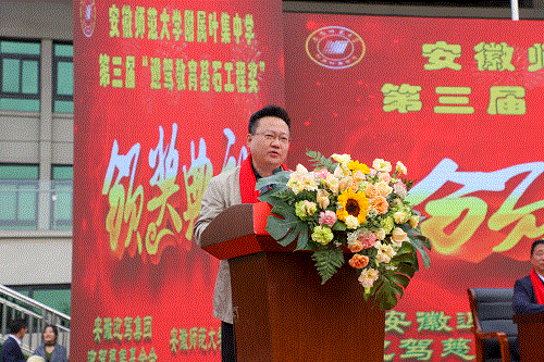 葉集區(qū)政協(xié)主席、宣傳部部長端木長根在典禮上講話。他希望廣大教師以此次頒獎典禮為契機,勤奮工作、潛心育人,自覺成為先進(jìn)思想文化的傳播者、學(xué)生健康成長的指導(dǎo)者,繼續(xù)書寫葉集教育的奮進(jìn)之筆;希望廣大學(xué)子以此次頒獎為鞭策,志存高遠(yuǎn)、發(fā)奮圖強,勤學(xué)苦練,不墜青云之志,永葆報國之心,常懷感恩之情,以“動如脫兔”的干勁、“兔子蹬鷹”的拼勁、“玉兔探月”的韌勁實現(xiàn)自我的“兔飛猛進(jìn)”。他希望安徽師范大學(xué)附屬葉集中學(xué)以此次頒獎典禮為契機,辦葉集人民滿意的學(xué)校。