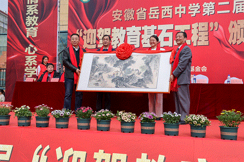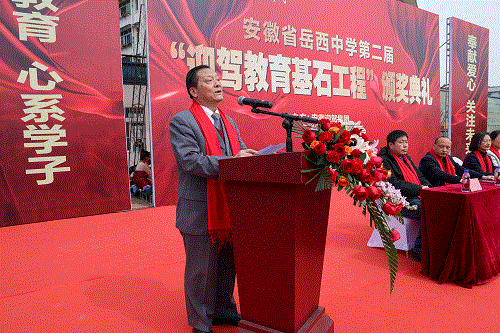 岳西中學(xué)校長(zhǎng)劉華柱代表岳西中學(xué)全體師生向與會(huì)嘉賓表示歡迎和感謝。他說(shuō),“迎駕教育基石工程”落戶岳西中學(xué)以來(lái),廣大教職員工深受鼓舞,倍感振奮,充分發(fā)揚(yáng)勇毅篤行、躬耕不輟的精神,在學(xué)校管理、教育教學(xué)、教學(xué)研究等諸多方面,表現(xiàn)出昂揚(yáng)飽滿的工作熱情;三千學(xué)子在迎駕基石工程獎(jiǎng)的激勵(lì)下,心懷感恩,立志進(jìn)取,不斷挑戰(zhàn)自我,激流勇進(jìn),在高考考場(chǎng)綻放出燦爛的青春。