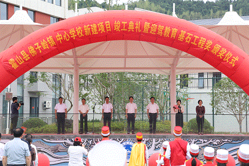 縣委副書記、縣長(zhǎng)羅文,中國(guó)釀酒大師、安徽迎駕貢酒股份有限公司董事長(zhǎng)倪永培等共同為佛子嶺鎮(zhèn)中心學(xué)校新建項(xiàng)目竣工剪彩。