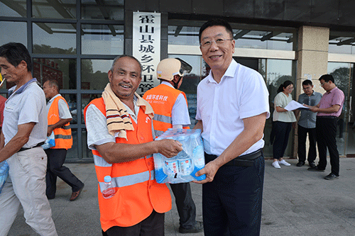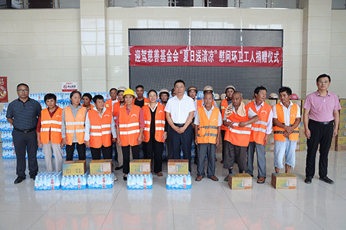 為加強(qiáng)對(duì)環(huán)衛(wèi)工人的關(guān)心關(guān)愛(ài),7月24日下午,迎駕慈善基金會(huì)開(kāi)展“夏日送清涼”慰問(wèn)環(huán)衛(wèi)工人活動(dòng),捐贈(zèng)24000瓶迎駕山泉和15000瓶無(wú)糖茶,為環(huán)衛(wèi)工人們送上清涼“禮包”。