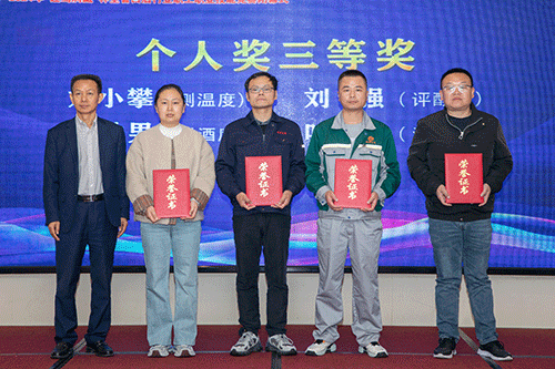 經(jīng)過激烈的比拼,安徽迎駕貢酒股份有限公司榮獲團(tuán)體二等獎(jiǎng),來自迎駕曲酒產(chǎn)業(yè)園10-1班組的陳俊榮獲測(cè)溫度單項(xiàng)個(gè)人一等獎(jiǎng),迎駕曲酒產(chǎn)業(yè)園9-4班組的葉濤榮獲測(cè)水份單項(xiàng)個(gè)人三等獎(jiǎng)。