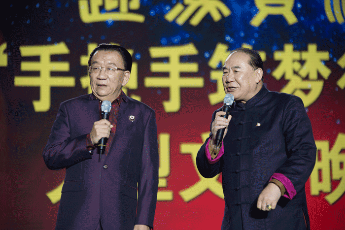 歌曲唱罷,著名評書表演藝術(shù)家劉蘭芳、相聲大師侯耀華和劉際先后上臺(tái),為觀眾帶來了精彩的評書選段《張飛請諸葛》和相聲《你說我說》,他們繪聲繪色的表演深深吸引了現(xiàn)場觀眾的目光,贏得一片歡呼叫好聲。