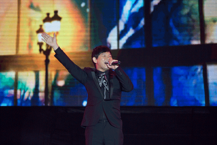 在一片熱烈的掌聲中,來自臺(tái)灣的實(shí)力歌手周華健閃亮登場,他連續(xù)演唱了《讓我歡喜讓我憂》、《你喜歡的會(huì)有幾個(gè)》以及《朋友》等三首經(jīng)典老歌。觀眾們隨著節(jié)奏,揮舞著手中的熒光棒,輕輕唱和,一段段熟悉的旋律久久回蕩在晚會(huì)會(huì)場的上空,把晚會(huì)推向了高潮。