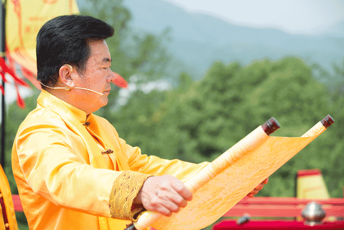 隨著主禮官宣布禮典儀式正式開啟,在莊嚴肅穆的氛圍中,由中國釀酒大師、全國人大代表、全國勞動模范、迎駕貢酒股份有限公司董事長倪永培擔任的主禮,率領(lǐng)迎駕由迎駕釀酒大師葉玉瓊、廣家權(quán)擔任的副禮,項興本、高玲、姜梅擔任的參禮正衣冠、正身,虔誠走上祭臺。參祭人員奉生態(tài)剮水、生態(tài)曲藥、生態(tài)原糧等貢品,凈手示誠、焚香靜心、恭迎祖駕、誦讀祭文、進香拜祖,為迎駕祈福、為霍山祈福、為霍山眾生虔誠祈禱。