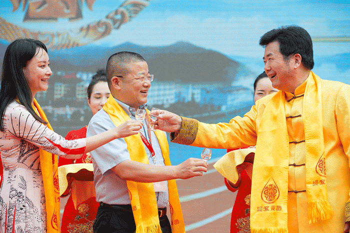 來自全國各地的企業(yè)精英、行業(yè)專家、文化名人、各界媒體等2000余名嘉賓云集于此,共同見證這一文化盛事,場外觀眾也通過網(wǎng)絡(luò)直播觀看了大典現(xiàn)場盛況。本次大典由拜山祭水禮典儀式、生態(tài)美酒洞藏、品迎駕瓊漿三個篇章組成。