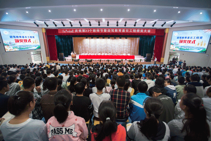 9月6日,六安一中、六安一中東校區(qū)慶祝第33個教師節(jié)暨迎駕教育基石工程獎頒獎大會在六安一中東校區(qū)舉行。市委宣傳部常務副部長關傳兵,迎駕貢酒股份有限公司董事長倪永培,迎駕慈善基金會理事長陳正林、副理事長兼秘書長張華等出席大會并為獲獎師生頒獎。