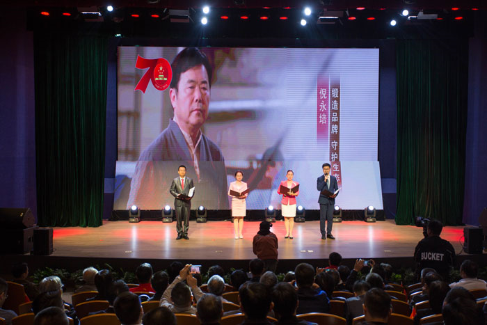10月20日,六安市“70年七十人·為國爭輝六安人”表彰活動在六安市圖書館隆重舉行,省委常委、市委書記孫云飛,市委常委、宣傳部長韓軍,市政協(xié)副主席司敏等出席表彰活動并為70名先進(jìn)人物頒獎,中國釀酒大師、迎駕貢酒股份有限公司董事長倪永培名列其中,被授予“為國爭輝六安人”榮譽證書。