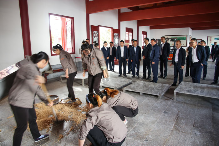 參觀結(jié)束后召開(kāi)座談會(huì),就規(guī)劃建設(shè)、環(huán)保綠化、節(jié)能減排、生產(chǎn)管理、企業(yè)文化等方面進(jìn)行深度探討。鐘方達(dá)對(duì)迎駕在生態(tài)釀造方面取得的成就給予了高度的肯定。他表示,習(xí)酒和迎駕在企業(yè)發(fā)展、未來(lái)目標(biāo)上存在著許多相似之處。他說(shuō),迎駕在生產(chǎn)機(jī)械化、生態(tài)循環(huán)系統(tǒng)的建設(shè)方面已經(jīng)達(dá)到全國(guó)領(lǐng)先水平,迎駕的酒文化在釀酒行業(yè)也獨(dú)樹(shù)一幟。他強(qiáng)調(diào),雙方應(yīng)加強(qiáng)相互學(xué)習(xí),取長(zhǎng)補(bǔ)短的發(fā)展態(tài)勢(shì),并為中國(guó)白酒作出應(yīng)有的貢獻(xiàn)。