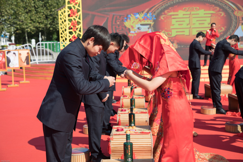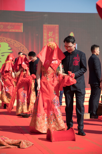 儀式隆重而不鋪張。在中式婚禮司儀的引導(dǎo)下,20對(duì)新人身著傳統(tǒng)禮服步入現(xiàn)場(chǎng),依次進(jìn)行邁火盆、跨馬鞍、三叩九拜、挑蓋頭、結(jié)發(fā)禮、合巹酒、執(zhí)手禮等環(huán)節(jié),盡顯傳統(tǒng)婚禮儀式的莊重典雅,感受中華民族傳統(tǒng)婚俗文化。著名歌手海來(lái)阿木來(lái)到現(xiàn)場(chǎng),為新人們送上甜蜜歌曲和美好祝福。同時(shí),安徽迎駕集團(tuán)還為新人們準(zhǔn)備了旅游券和迎駕洞藏酒券等賀禮。