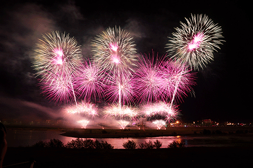 伴隨著音樂聲,一簇又一簇流光溢彩的焰火匯聚成璀璨的星河。煙花接續(xù)驚鳴,燃空更比晝明,星空為幕、煙花作筆,紅的熱烈,綠的清新,藍的深邃,紫的神秘,天然的畫布上瞬間被染上了五彩斑斕的色彩,美輪美奐、絢麗多彩,令人目不暇接,驚嘆不已?,F(xiàn)場觀眾不時發(fā)出陣陣歡呼和贊許聲。