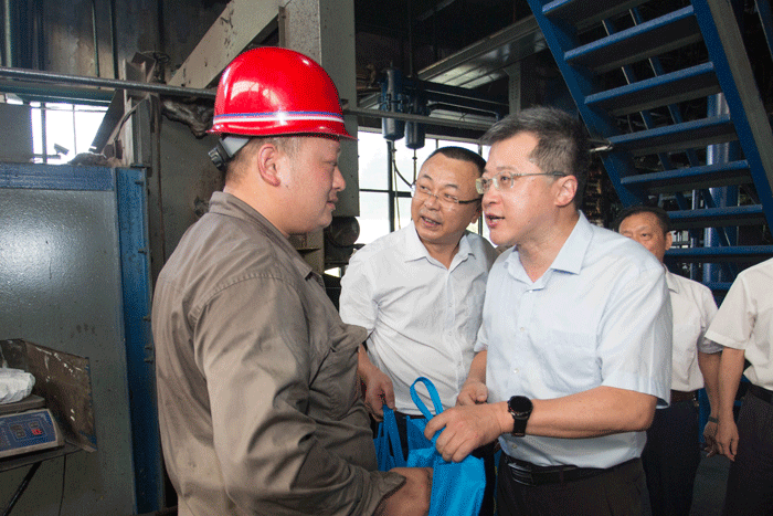 隨著入伏高溫天的到來,接連攀升的氣溫給一線工作者帶來了嚴峻的考驗。7月23日,霍山縣委書記項躍文、縣委副書記蘇昊等一行,來到溢彩公司開展“送清涼”慰問活動,為堅守在生產(chǎn)一線的迎駕員工們送上愛心和清涼。集團黨委副書記張平陪同慰問。在溢彩公司窯爐車間,項躍文了解了當前生產(chǎn)情況,看望慰問了冒著高溫堅守在生產(chǎn)一線的工人們,詳細詢問了他們的工作生活情況,感謝他們頂著高
