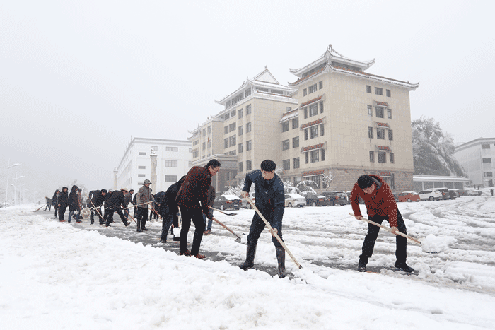 自1月3日下午開始,六安市出現(xiàn)大范圍雨雪天氣,降雪不斷。受暴雪影響,公司廠區(qū)被厚厚的積雪覆蓋,路面出現(xiàn)濕滑、積雪、結(jié)冰等情況,對(duì)車輛通行及員工出行帶來嚴(yán)重影響。面對(duì)襲來的暴雪,集團(tuán)公司以雪為令,緊急動(dòng)員、超前部署,精心組織、周密安排,采取有效措施積極應(yīng)對(duì),全力確保惡劣天氣下生產(chǎn)安全。早在降雪前,集團(tuán)安保部即通過RTX、微信工作群發(fā)布溫馨提示,提醒全體員工注意